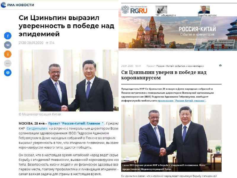 俄罗斯国家级通讯社俄新社以《习近平会见世界卫生组织总干事》为题转载中央广播电视总台中俄头条的文章,报道了习近平与世卫组织总干事的会晤。报道指出,中方高度重视同世界卫生组织的合作,欢迎世界卫生组织参与本次疫情防控工作,愿同世界卫生组织和国际社会一道,共同维护好地区和全球的公共卫生安全。相信世界卫生组织和国际社会能够客观公正、冷静理性地评估疫情。